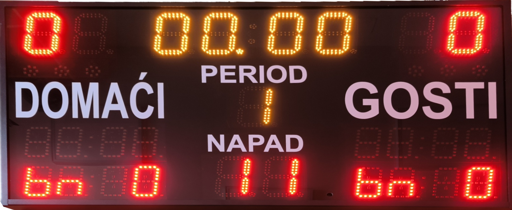 Podržani spotovi: Košarka, Rukomet, Nogomet, Hokej, Odbojka i Vaterpolo Integrirano čuvanje svih parametara utakmice u slučaju nestanka struje Mogućnost bežičnog spajanja tipkovnice sa semaforom Visina znamenki: rezultat, vrijeme, period, vrijeme napada 15cm i isključenje igrača 10cm S ugrađenom dvotonskom zvučnom sirenom