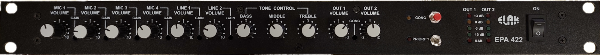 Dimenzije kućišta: 85×483×45mm Predviđeno za 1U montažu u rack ormar Četiri dinamička ili «phantom» mikrofonska ulaza Dva sumirana linijska ulaza Dva balansirana izlaza Upravljanje bojom tona Ugrađena «gong» funkcija s dva ili tri tona Ugrađeni relej za prioritetni uklop Jednostavna konfiguracija pomoću «DIP» prekidača sa stražnje strane uređaja Ugrađeni izlazni VU-metar